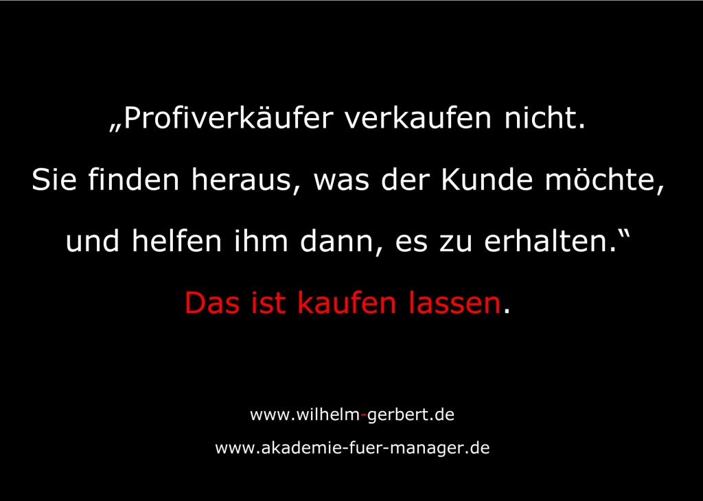 Ein guter Verkäufer findet heraus was der Kunde will oder sucht und hilft im es zu erhalten – das ist kaufen lassen.